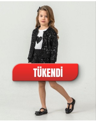Payetli Siyah Şort Etek Ceket 3lü Takım
